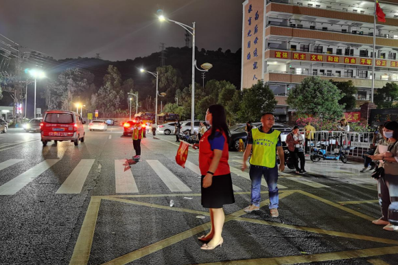 彩虹多多党团志愿者分队队员现场维护交通秩序